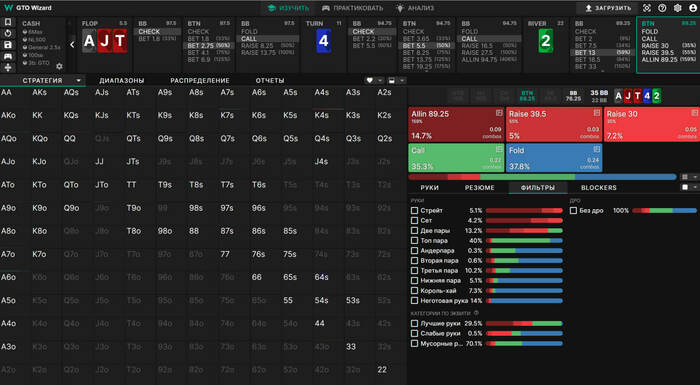 Я на протяжении нескольких лет, помимо дроча в софте и трень за ласт год, их было не мало, каждый день прокручиваю споты в голове или один спот, но очень долго, дотошно с эмпатией, ликами челополяны, разными сайзами и линиями с разных сторон. Я постоянно все подвергаю сомнению, даже если там бетонно запаковано, перепроверяю, потому что постоянно ищу ответы, гноблю себя, потому что мне кажется, что делаю недостаточно. Хотя те, кто меня знает говорят, что я в крайности бросаюсь, что нужен баланс, а мне в кайф, хули нет? Критику воспринимаю очень положительно, но когда она аргументирована и адекватна в подаче. Да и у самого самокритики больше, чем нужно. Для части людей, с которыми я общаюсь тоже, все логично, бля ну не мог же у меня такой фэйл произойти что я вообще не туда копаю, а если мог это же пиздец шиза))) Постоянно пополняю выборки на страты, например: кбет-3беты, мультисайзы пре/постфлоп, 1/3-40, 80-20, микросайзы, донки, логики структур, srp/3bp/4bp/iso/sqz и тд, в которых мы реализовали наши цели, получили то, что хотели и шд/реакцию увидели такую, как ожидали. При этом у меня достаточно просто получается проецировать споты на дистанцию, я знаю, где нужно это делать, а где нет. И в моей голове в понимании солвера, различных стратегических моментов и линий, сайзингов, картинка сложилась так, что все логично и что еще копать и копать, опираясь на эту логику можно ебом.