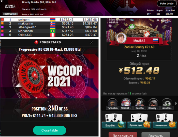 вчерашний новичек Muvik42 попадает в ТОП3 турнира Zodiak Bounty и зарабатывает 512☘️