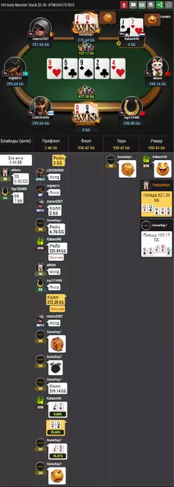 За 4 стартовых и 3 нока... Пуш 33 от индуса понятно. У него 2 бб. Перед этим я сетом вальтов переехал его королей, но колы китайца и румуна. Крейзи. 8,55 долларов. Понятно, что в турнирах и по тысяче долларов такое есть. Просто во мне говорит обида.