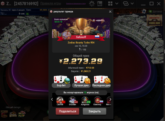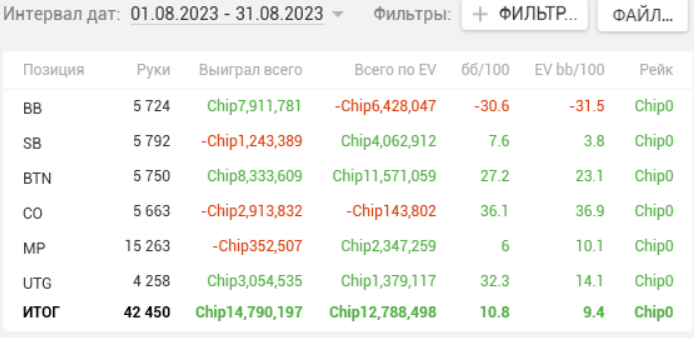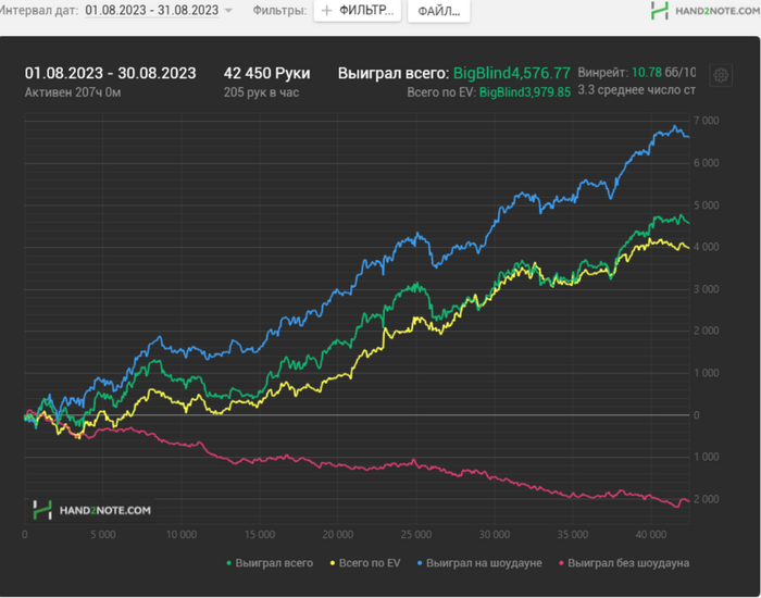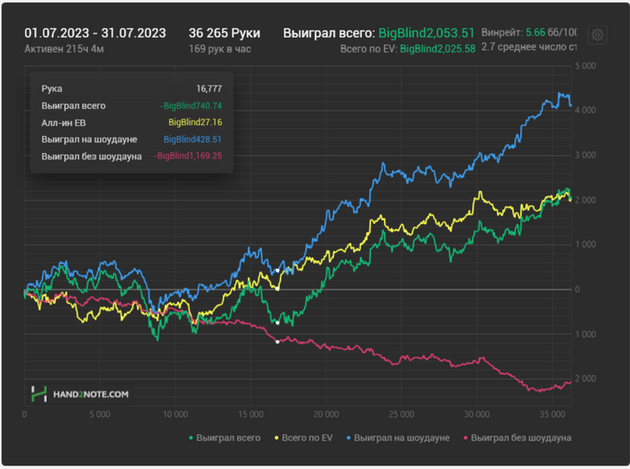 Если брать покерную составляющую, то по деньгам первый раз закончил месяц в минус больше 300 баксов... -765 $ где-то, но винрейты неплохие
