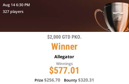 выиграл вчера в мистери за 15, билет в полтинник) посидел там часик , да вылетел красиво