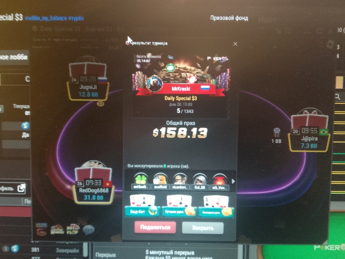 Завтра сыграю после работы уже норм сессию тогда, подведу итоги, немного тут распишу насчёт планов и перееду в раздел МТТ низких лимитов, всем хорошего дня)