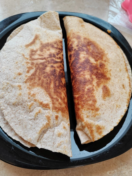 7) получается две таких вот кесадильи. Завариваем кофе и наслаждаемся плотным завтраком, который заряжает на целый день. Удобный формат для катки или работы. Если постоит и пропитается будет еще вкуснее.