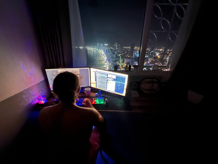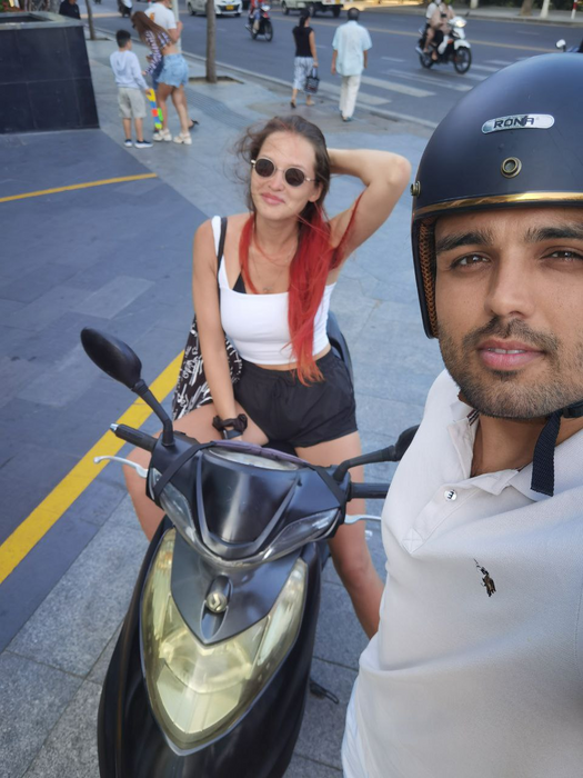 Через два дня после этого случая в лифте я шёл с пробежки от пляжа к своему байку. Был полдень, максимальное пэкло, и всё, чего я сейчас хотел - сложить вещи в байк и пойти окунуться в море. Сложив вещи, я оказался с ключом в руках и думал, куда его заныкать. В районе пляжа орудует много воришек, и ценные вещи не рекомендуется оставлять даже на минуту. Перспектива догонять молодого вьета меня не особо радовала - на тот день я своё уже отбегал - так что я шёл к компании вьетов постарше, игравших в карты в тени пальм. На подходе к ним у меня на пути встали парень с девушкой. Издалека мне показалось, что они говорили между собой по-русски, глядя на меня, но подойдя, сказали: