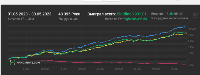 Откатал где-то минус 200-250 с хороших новостей иду на 500 турниров в этом месяцу на данный момент сыграл порядка 250-270 входов аби очень близкое к 10