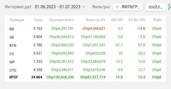 Начнем с винрейтов заветную 20ку так и не добился но дистанция мне нравится может сегодня добью до 50к чтобы красиво было) 17бб тоже ничего, всегда себе хотел красную вверх но с моим стилем игры не получается но и хрен бы с ней )