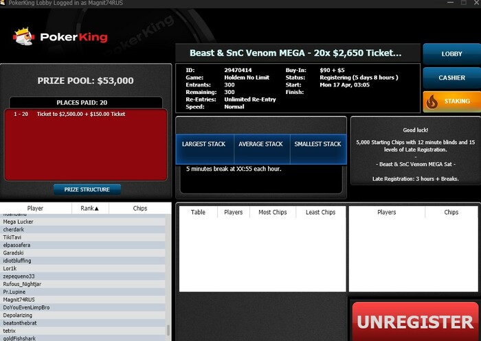 PS: Начислили билет за рейк-гонку. Сателлит очень жирный, надо тащить!