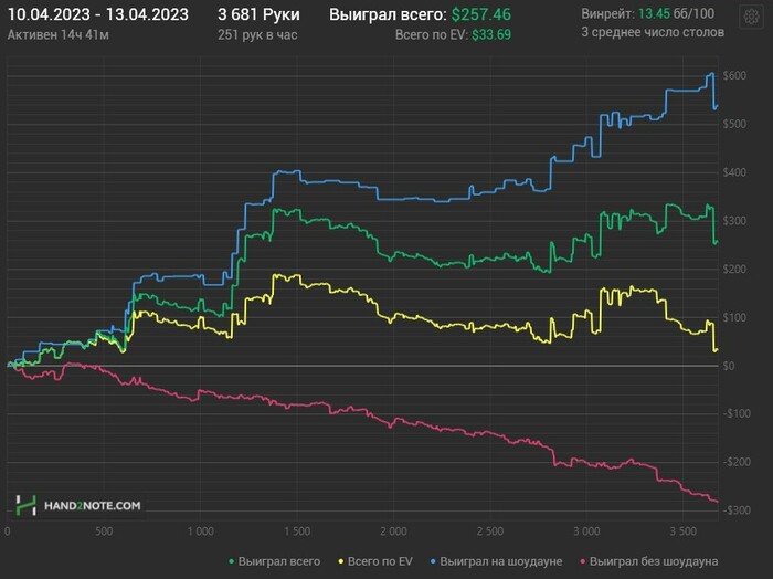 Закрываю вторую рабочую неделю. Много писать не буду, кончились силы после оффлайн покатушек. Большую часть времени играл НЛ25/НЛ50 ФР, Poker King + Chico. Игра намного проще, и думаю игра на профит ничем не хуже рейкомески в BLITZ. Играл местами откровенно плохо, сказывается переход с быстрых столов. Кажется, что все тебя 3бетят в блеф.😄 Перебрал на этой неделе знатно. Цифры профита считаю по кассе, т.к. бумпоты трекер считает не корректно. H2N так же немного завышает профит на чико.
