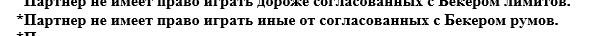 *Партнер не имеет право играть дороже согласованных с Бекером лимитов.