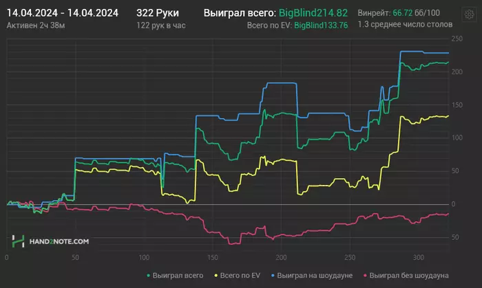 Дилер почему-то сказал, что я на пути к кубку и интерес к дележке у ребят появился. В итоге поделили. Я тут же проиграл К5<82 и в следующие 5 минут отдал все чипаку. Вот такой результат: