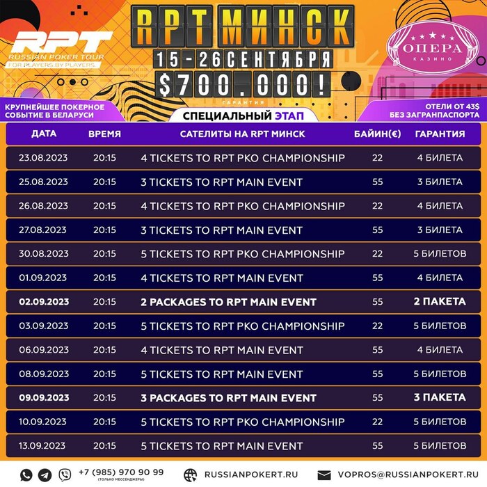 🎟️Хотим напомнить, что сейчас во всю идут онлайн сателлиты, так уже сегодня 2 сентября будет разыграно минимум 2 пакета на RPT Main Event!