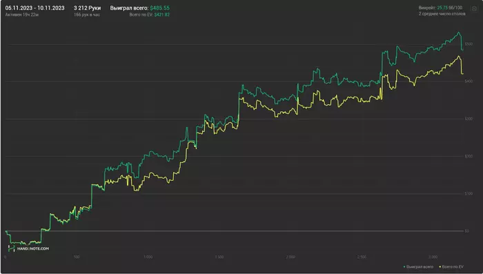 Хотел в пятницу покатать подольше, но на удивление сейчас игры совсем мало. Может фиши пошли бухать? Решил закрыть столы и пойти отдыхать, а то в конце сессии совершил грубую ошибку, потому что потерял концентрацию. Мысли были не за столом.