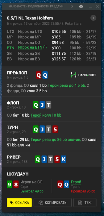 На 200 старзов наоборот. Почти всю дистанцию пиздили кто как мог. И фиши и реги. Доезжаем в сет на терне, чтобы оплатить по полной овер сет, доехавший оппу на ривере. Фестиваль ахуенных ранаутов, когда на флопе натс, а на ривере какашка. Классика. Но уверенность в своих силах позволила не отключить лимит. Просто старался отыгрывать свою страту. И под конец насыпали подарков.