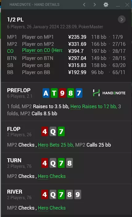 4ex, А ты посмотри ривер , просто я смотрел , мы любой бланковый ривер колим с нашим флешом при чем с запасом , поэтому пот сайз турна тоже держим , потому что там по комбам асх хватает для кола в соотношении с Аcc, думаю удивишься если не досмотрел ривер вдруг )