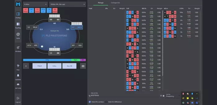 Что касается постфлопа , то там на вскидку нам нужно около 25% эквити , что я думаю возможно будет околонулевым колом против ренжа в котором могут быть просто голые тузы. Я так рассуждаю.