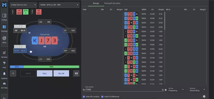 В общем префлоп выбрасывать тут нашу руку получается около 600бб на 100 раздач потеря. Даже пушить префлоп будет лучше чем нажать фолд.