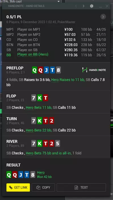 Plovets00, Здесь в целом про ГТО никакой речи не может быть , когда против нас опонент со впипом 70. Поэтому и префлоп расширение и все остальное. Пока что не могу найти причин для чека флопа: