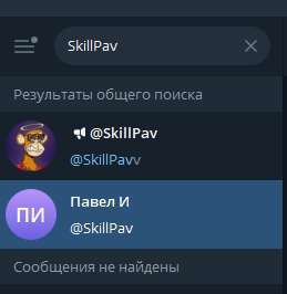 Вот скрин поиска с ТГ по его логину. Там какой то левый канал с его аватаркой и единственным сообщением: