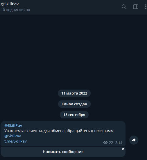 nerto-spirt, у меня есть просто своя ветка с отзывами обо мне на канале Лорема, рекламу чтобы куда то запустить я не делал, просто есть роль "Обмены на сервере" и ветка отзывов обо мне и все, так же кто спрашивает меня в Дискорде при первом обмене, есть правила, про обмен, и присутствует черный список, который пополняется но не так часто ,что там такая группа есть и была создана я видел, я писал жалобы на ее удаление, но все четно! Поэтому в своем объявлении я и писал что переходить по ссылке, я же ее не просто так оставлял и прописывал. И первое сообщение которое мне написал ТС было не в личку Джипси, а как раз в телегу и скорее всего это писал мошенник, копируя сообщения от ТСа