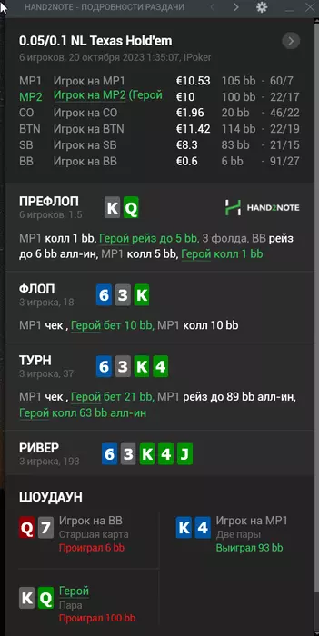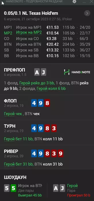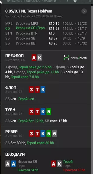 Спасибо за анализ.Я прекрасно понимаю,что ошибся,собственно поэтому данные раздачи и появляются тут.Играю одновременно 6 столов и пока не всегда получается принимать оптимальные решения.Понятно,что я могу тут навыкладывать кулеров и всяких переездов(такого тоже хватает),только вот толку от этого не будет никакого 🤝