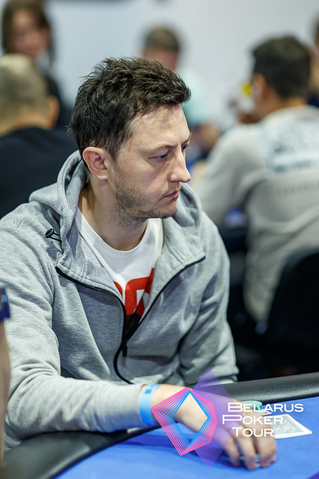 Проиграл уже одно выставление сверху, в следующей раздаче поставил олл-ин в малый блайнд Павла Мешкова и большой блайнд Максима Абрамовича.