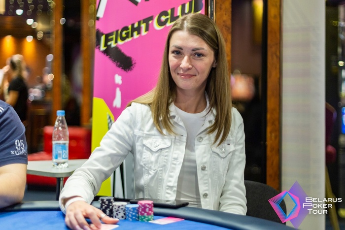 Игорь Карпов был в олл-ине на большом блайнде. Александра и Антон Толмачев скинули около 30к на флопе , прочекали терн .