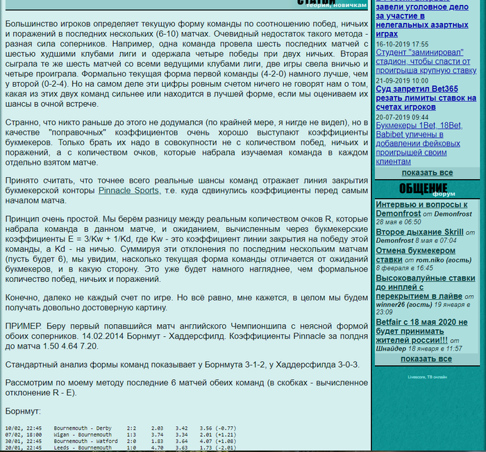 Fabolous, заморочился ты по статистике. Я настолько глубоко не погружаюсь. Анализ коэффициентов - это нужная вещь. Если ты не понимаешь линию, то никакой анализ команд тебя в плюс не выведет. Я же просто выставляю нижний предел при определенных обстоятельствах.