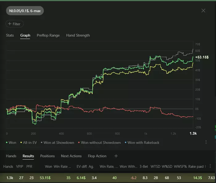 Открыл для себя новый вариант работы над игрой, разбор базы, один добрый человек подогнал мне базу IPOKER на 3.6кк рук лимитов нл10-20, + у меня в распоряжении оказался отличный худ, в котором для эксплойта в моменте игры над конкретным оппонентом тяжелее найти инфу, но при разборе базы попапы внутри оказались супер удобным, где-то пару дней я переделывал его под себя, заодно изучал его, потом залипал в базу на протяжении дней 3-4, нашел много очень полезной информации, научился определить сильные/слабые действия, фолды по текстурам досок, просмотрел частоты CB в разные борды и больше внимания начал уделять сайзингам оппов постфлоп, добавил побольше блефа в линии, некоторая инфа вообще показалось не интуитивной, но дельной.