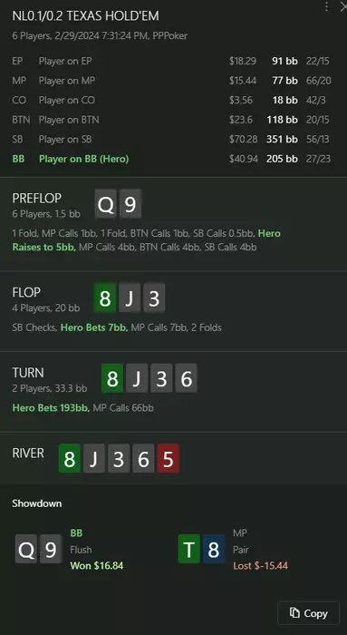 Мне не хватало какой-то легкой конкуренции что-ли(еще и ОЧЕНЬ неудобно играть в приложениях с компа), 60% времени просто мониторишь клубы в поисках лучших оппонентов, куча непрофильной игры в антестолах, 50бб дип, 200бб дип, я уже забыл как играть в этот ваш холдем, концентрация оказалась на нуле и собственные ошибки приносили моральные и финансовые страдания, сразу вспомнились зарубы на IPOKER(селект 30-40, но мультитейблинг, огромное количество игры, без необходимости обновлять лобби каждые 30 секунд), решил отказаться от продолжения сотрудничества(там еще и контракт какой-то слишком привязывающий к игре оказался) и пойти своим путем, появилось желание НАУЧИТЬСЯ играть самому, а потом уже заниматься гриндом. Ушел на недельный отдых.