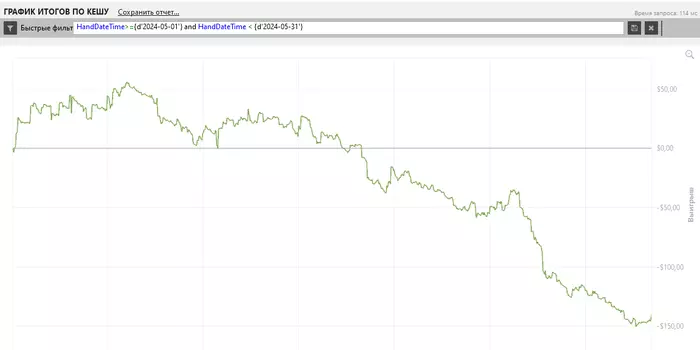 Март, прямо скажу, порадовал. Особенно его вторая половина. Получилось поставить рекорд по сумме выигрыша за одну отдельную сессию в онлайн кэше. Хочется верить, что это скилл стал более продвинутым, а не апстрик, но время покажет.