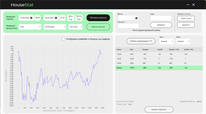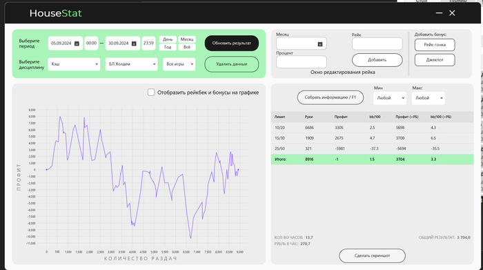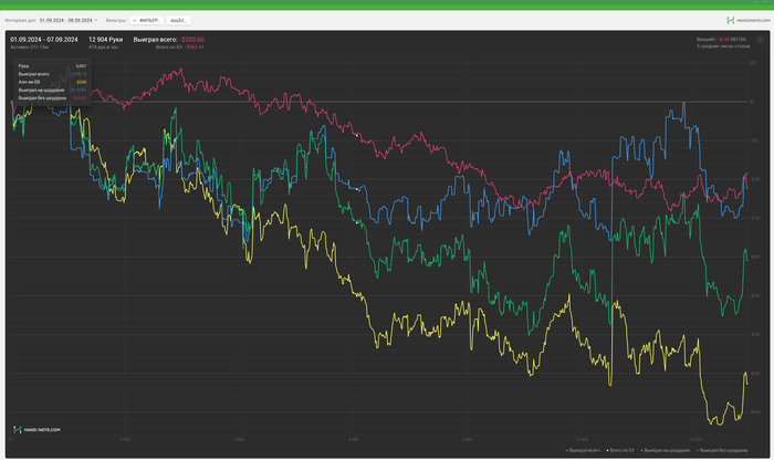 Что то начала месяца, я стал немного афигивать и почувствовал в себе уверенность и стал до последнего не вставать из-за стола, пиздиться со своими коллегами в ХА. На что и сказался профит. Веномакс от части вернул. Стал очень широко открываться и агрессивно играть. "Чуть угомоню свои таланты", надо срочно набивать бр и уже покинуть этот лимит нл20-30.