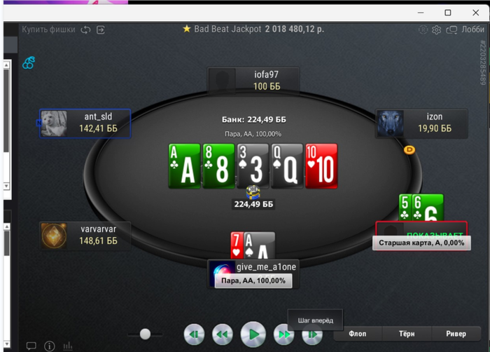 но тут был эксклюзив к этому оппу, т.к. частенько стал 3бетить меня в позе