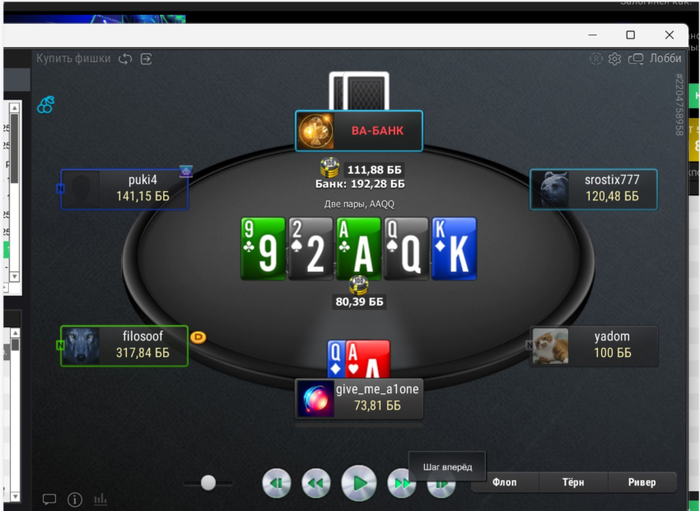 Короче я вывел пол бра и депнул на виномакс, что бы катать исключительно нл50 и пиздец, как же мне выключили рубильник! Просто я проебывал натс стрит с флопа против тп + бд-фд руки. Потом небольшой тильт. Делал ошибки в этом блядском 9максе. Посмотрел на ловушки , оказываетяс дефолтные. Подучился, но ну его нахуй этот 9 макс для аутистов, извините меня, конечно