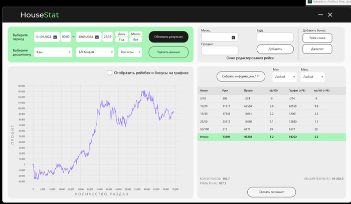 Цель - бр 15-20к и я думаю покончу с покером, т.к. я не хочу тратить свои силы, сидя перед компом, пропуская субботу и воскресенья, так играя еще и ночью. Хотя понимание игры выросло! Я сижу бывают хуею с недорегов, которые колят префлопы в минус 10бб и более и еще нажимают кнопку интр в чате. Игра мне очень нравится, но ментально не вывожу до конца