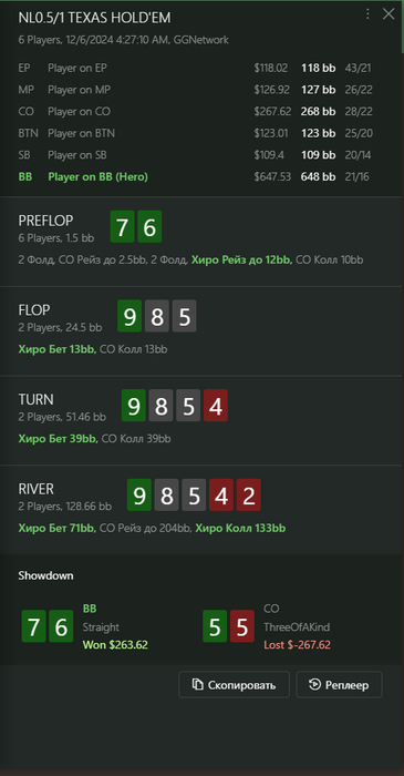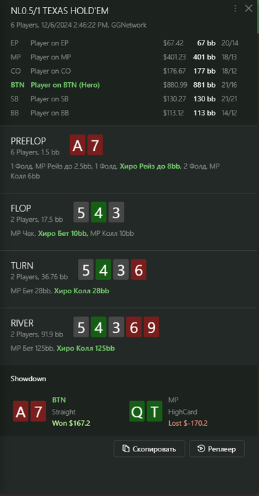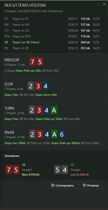 У меня на сотке за 75к рук 5175$ рейка, это 6,9bb/100