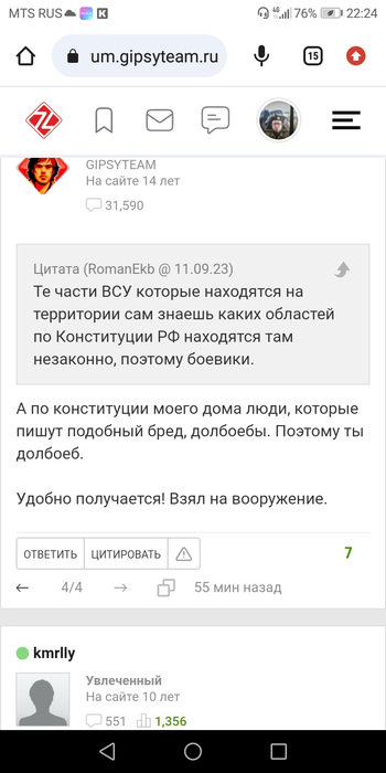 Не хотелось бы иметь каких-то двойных стандартов тут. И в отношении участников форума- и касаемо цензуры . Можно написать "рабы,сдохните и прочее" и это остаётся незамеченным, но стоит Z-патриоту сказать равносильное - бан из раздела(а возможно и всего форума) и прочее. Я не к тому что я отстаиваю взгляды последних, но политические взгляды модераторов играют огромную роль в формировании дискуссии в целом. Я против людоедских взглядов. Но они должны быть наказуемы по обе стороны. Мне неприятно читать о гибели людей на войне , и вдвойне дико читать "ха-ха, сдохло ваших 500 человек, так вам и надо рабы" и видеть кучу плюсиков под этим постом, причём даже иногда от модераторов .