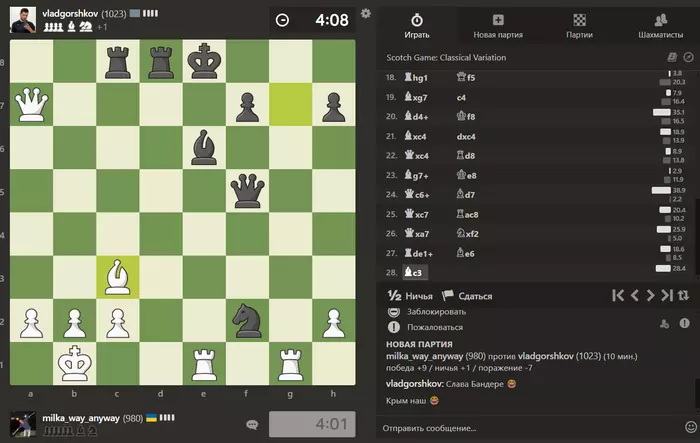 Слушай, а как ты думаешь, происходит ли что-либо зеркальное? Думаю ты догадываешься, что приходится выслушивать порой. Причём не от украинцев. От украинцев ни разу не слышал ни слова. В основном сразу отключаются от партии. А иногда молча играют. Молчим и ходим. Молчим и ходим. Грузия, Бразилия, США - эти впереди планеты всей. Rab putina и всё такое.