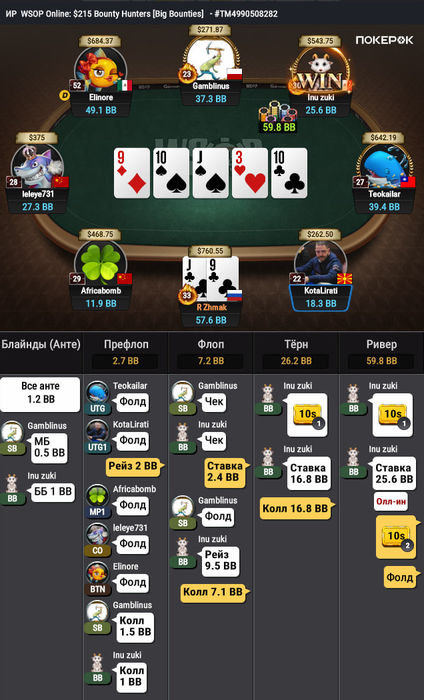 В заключение, это легкий чек флопа, без сложных решений на следующих улицах.