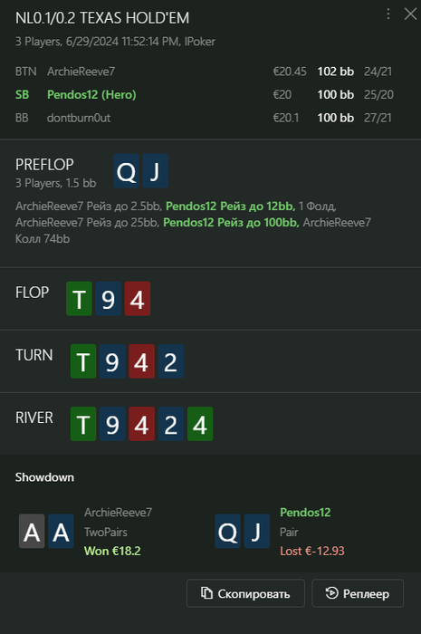 Тёрн: Опп чекбэкнул и в моих глазах, упал капнулся на сильное велью. Я подумал, что Тх могут так сыграть, карманки валетов, флаш дро, АК. То есть довольно существенная часть ренжа.