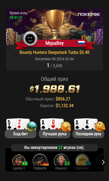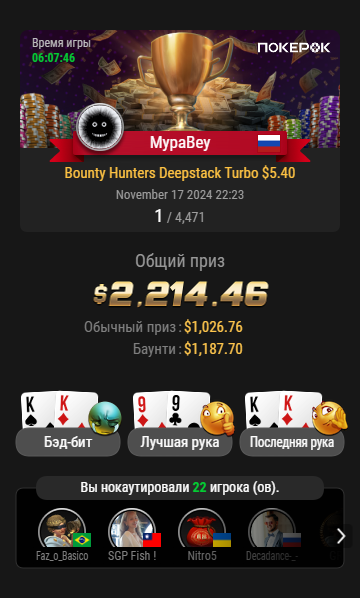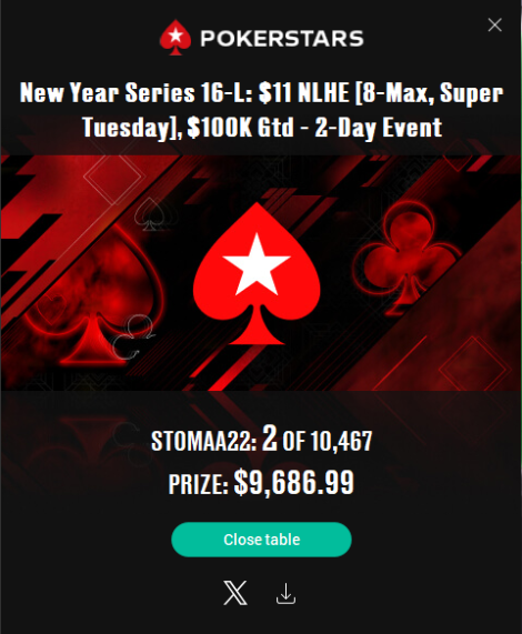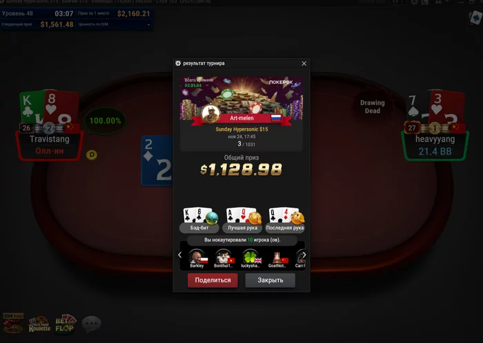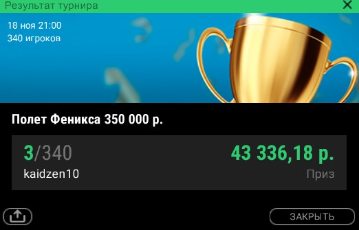 После двух проведенных тренировок, уже виден положительный результат игры. Никиту как тренера однозначно рекомендую. Обновлен мой бест кеш, с Никитой продолжим тренироваться и работать над игрой. Всём удачи за столами!!!