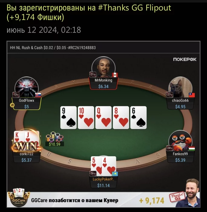 В начале играл тайтово, пока стеки не утроил, после начал как свинья играть. БТН, СБ все руки начал открывать🤦♂️