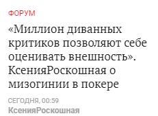 Radeo_, ну да) у нас же комменты только после переездов в сторону женщин летят) или просто какой-то идиот коллит рейз префлопа с 73o, ставит ол ин по третьей паре на флопе (на бет пол пота) а потом визжит о том, что его девочка переехала Ривером.