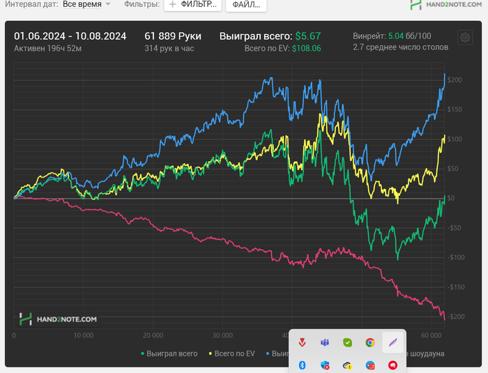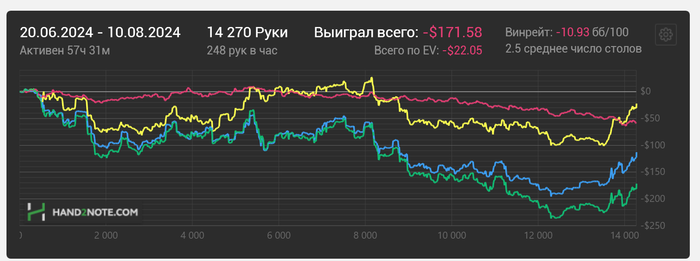 НАКОНЕЦ НАКОНЕЦ я вышел в плюс по зеленой линии до сих под не додает 150 долларов на 10 но я очень стараюсь играть, сегодня раза 2 проиграл с низу и 2 раза монетку, но отыграл сессию в плюс 4би на 10, очень идет тяжело но я стараюсь не падать духом и играть, очень сильно тащит рейк бек если бы не он не знаю что бы я сейчас делал, думаю что при конском рейке и таком даунстрике я должен был уже быть приблизительно к нл20, потому что ну невезет конкретно не додает очень много. но я стараюсь и закрепляюсь на нл10
