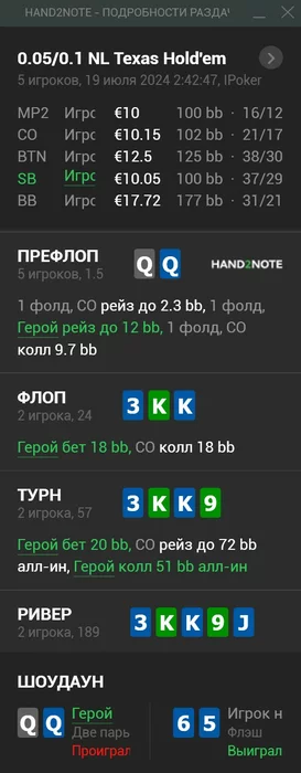 . Интересно по трибету не обратил внимание, по поводу КД я просто колил любых 2 блокера потому что это был 5 раз подряд алл ин и я просто отбивал випа на КД считая что мой спектр впереди и оказался прав
