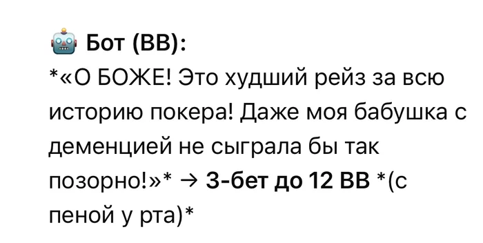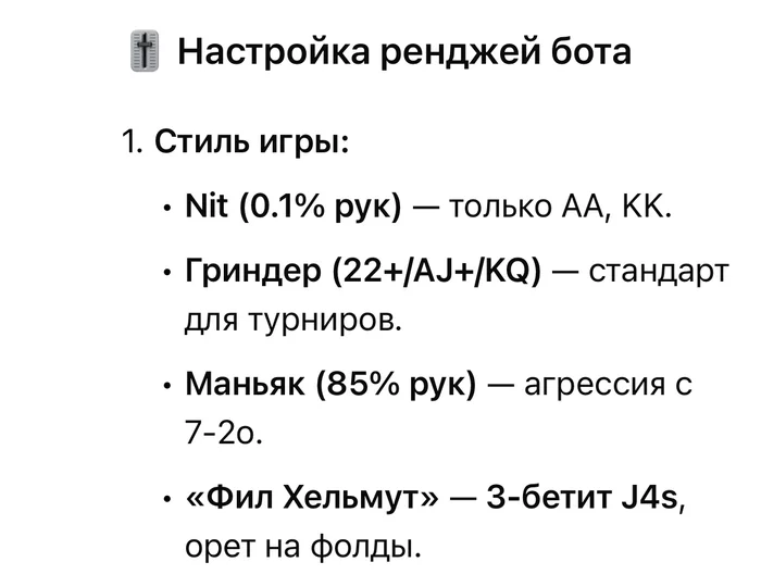 Запрашиваем пресет бота на 3-беты и общий постфлоп со старта сессии. Далее — без редактуры.