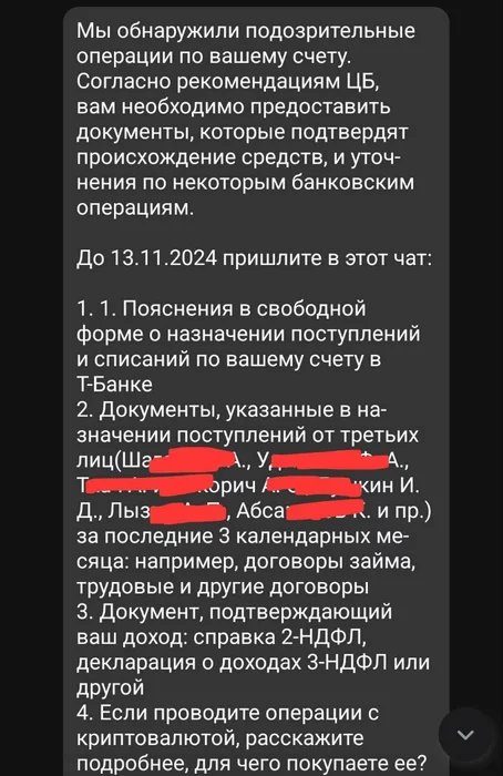 - Банк может запросить документы о происхождении денег (например, при крупном переводе).