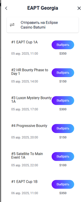 EAPT, здравуйте. Дайте комментарий, пожалуйста. Я захожу в люксон, могу оплатить БИ на любой турнир серии (смотрите скрин под спойлером).
