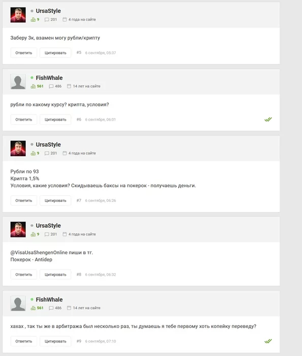 Иначе мне трудно представить зачем мне человек пишет, спрашивая сколько у меня скрила евро в наличии, чтобы потом сказать, что деньги вперед нужны от меня, а он будет депать на покерок, свапать на рубли и покупать юсдт которые мне нужны.