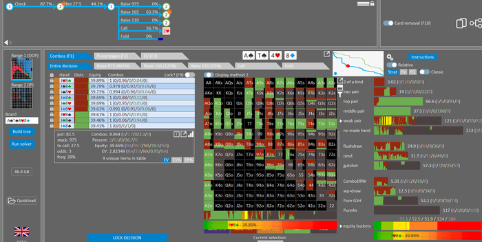 Просто загружаете файл в солвер и получаете точный расчет включая терны. Это возможность тренироваться и анализировать игру.