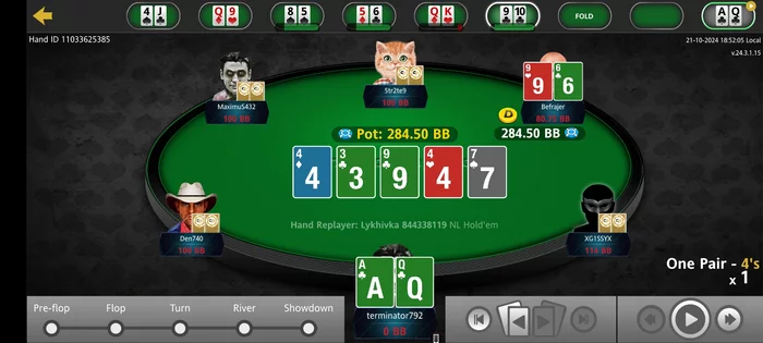 Всем привет, откатал сегодня небольшую ссесию, сегодня нельзя было мне играть по договору с самим с собой, напомню решил день через день играть, к вечеру не выдержал и решил поиграть, начал с Омахи, такая себе игра, никаких стратегий собирай пасьянсы и вельюбеть, но собрать натс не так просто, если в холдем две карты на префлопе нужно подождать хорошие, то в Омахе 4, поэтому в банк зайти трудно, в пло 5 или 6 проще, туда сюда стек отобрали, я у фиша отобрал, чего то мне не понравилось, пошел видос Стефана посмотрел на Ютуб, вдохновился и пошел в холдем, вроде все складывалось норм, вот две раздачи хорошие, здесь чел выставился на тёрне 4 Бет поте, но я натс блочу , поэтому заколил, правда могли быть дамы, но это уже авария